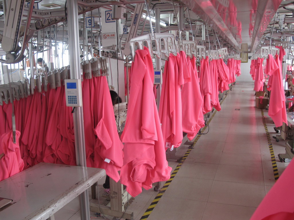 傳統(tǒng)流水線以“捆包制”為主,同一工序的多件服裝集中處理,易導(dǎo)致工序間等待、半成品積壓。而單件流水線采用“單件流”模式,每件服裝獨(dú)立流轉(zhuǎn),工序間無縫銜接,如同“接力賽”般高效。例如,一件T恤的裁片從第一道工序(車縫領(lǐng)口)完成后,立即通過輸送帶或吊掛系統(tǒng)傳遞至下一工位(車縫袖口),無需等待其他同工序服裝,徹底消除批量生產(chǎn)中的“時(shí)間浪費(fèi)”。